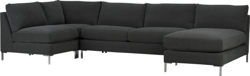 All modular pieces (chair, corner, love seat, and chaise). Easy to fit in the different sized spaces of each unit.