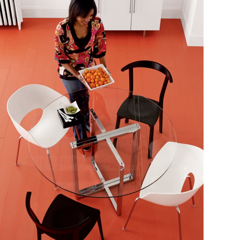Round table in studios and one bedrooms (clear glass top)